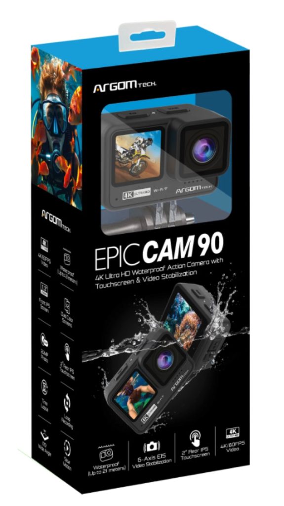 ARGOM CÁMARA DE ACCIÓN EPIC 90 4K ULTRA HD CON CONTROL REMOTO Y PANTALLAS DUALES