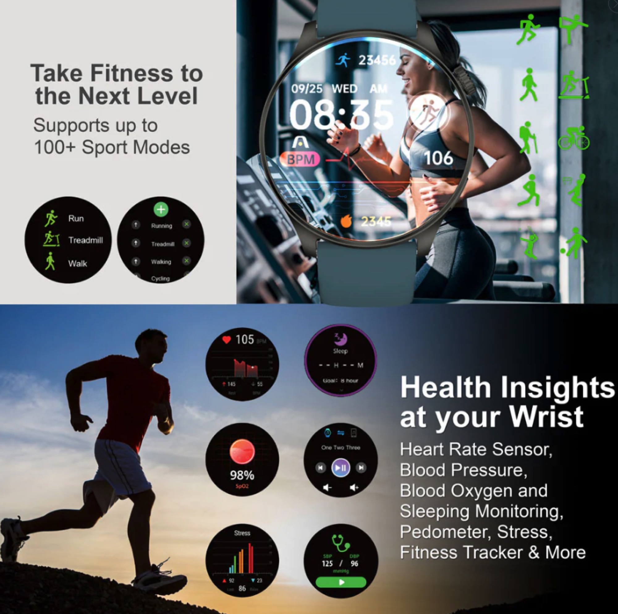 • Seguimiento físico/de actividad física: 107 modos