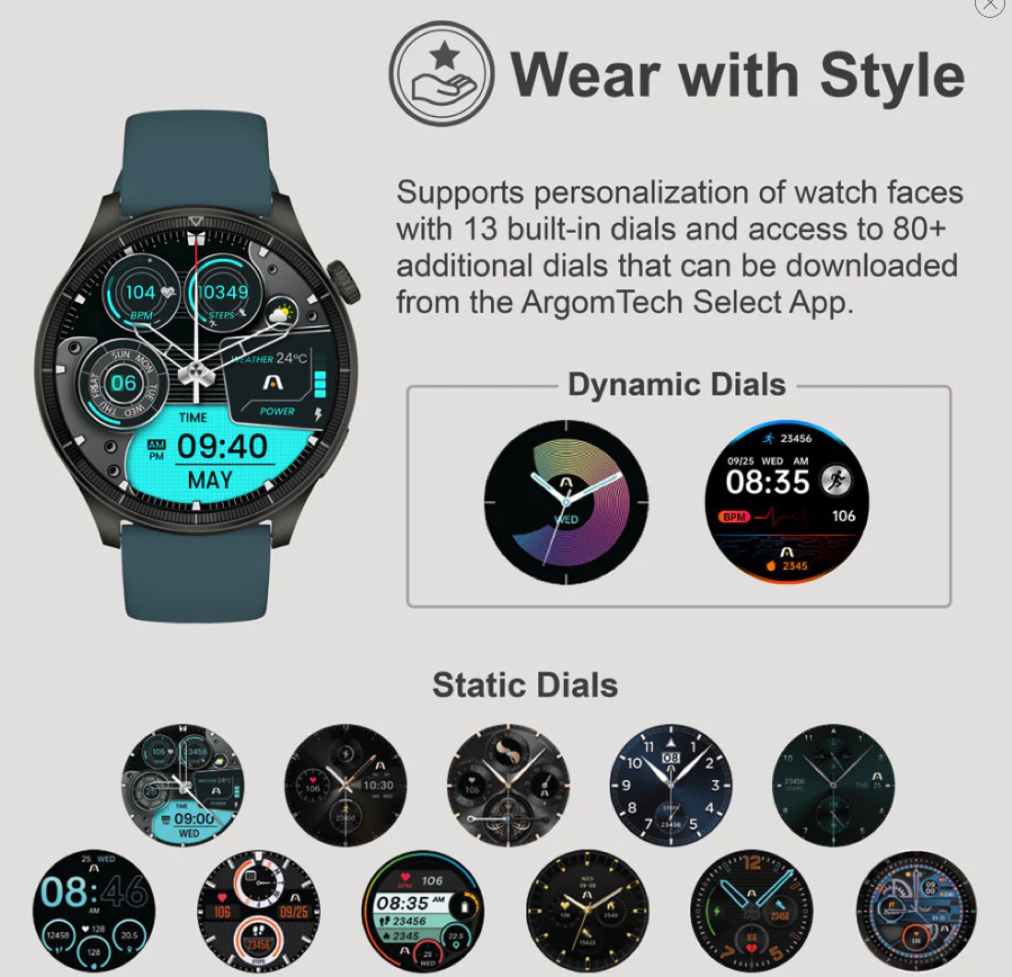 • Admite la personalización de esferas de reloj a través de la aplicación