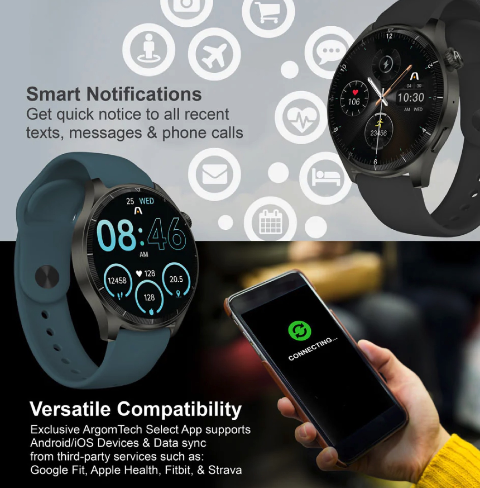 Diseñado para durar, el C61 es resistente al agua y al polvo, con clasificación IP67. Puedes elegir entre más de 80 esferas de reloj a través de la app ArgomTech Select, todas mostradas en una gran pantalla TFT de 1,45″ protegida por cristal templado. Con una duración de batería de hasta 5 días, el smartwatch C61 te ayuda a mantenerte en el camino correcto hacia tus objetivos de salud y estilo de vida con facilidad.