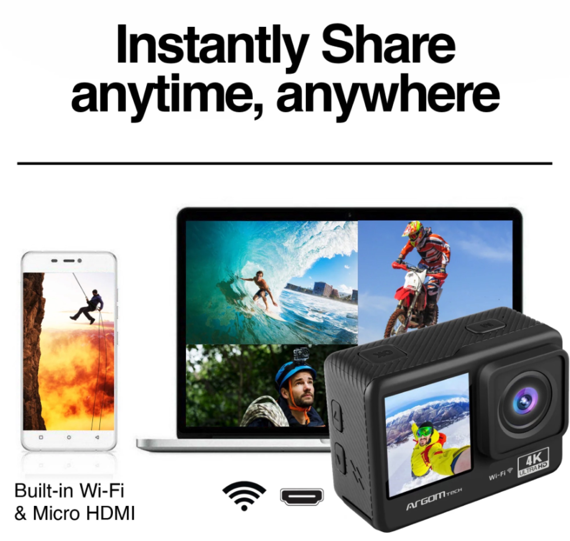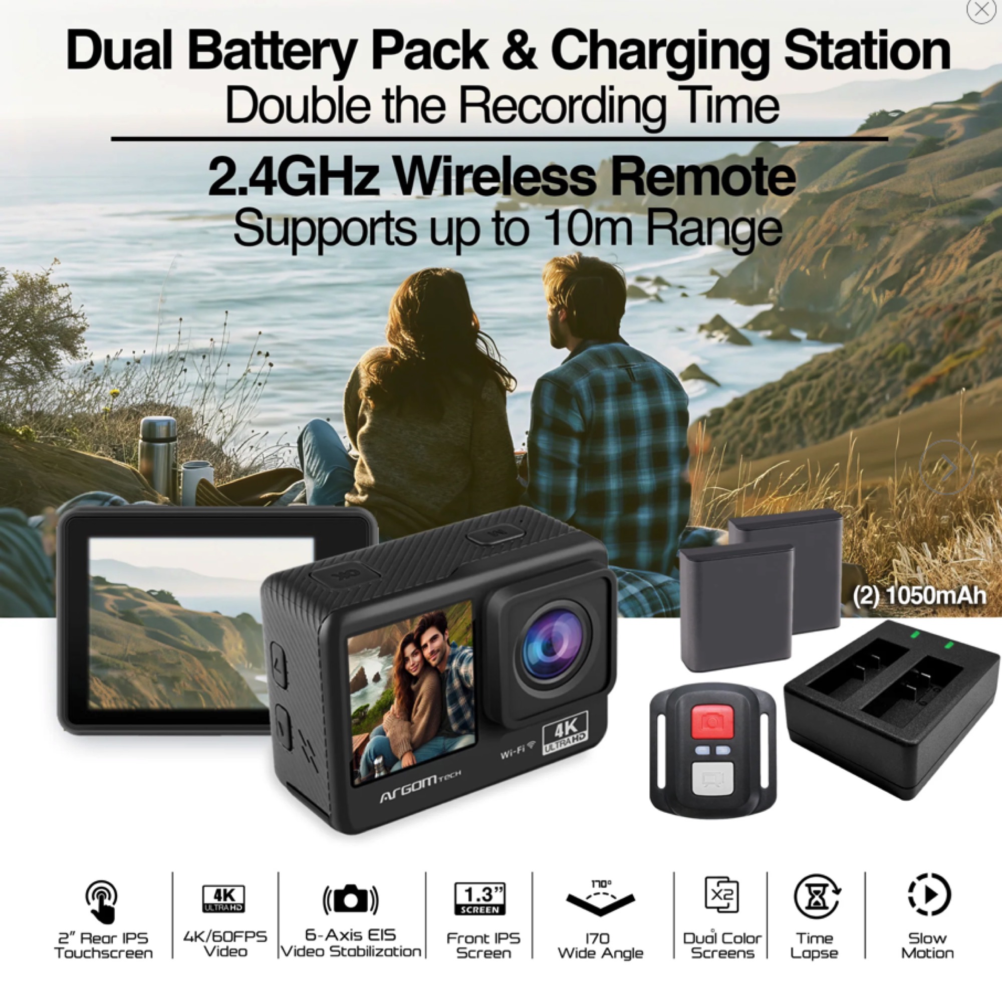 ARGOM CÁMARA DE ACCIÓN EPIC 88 4K ULTRA HD CON CONTROL REMOTO Y PANTALLAS DUALES