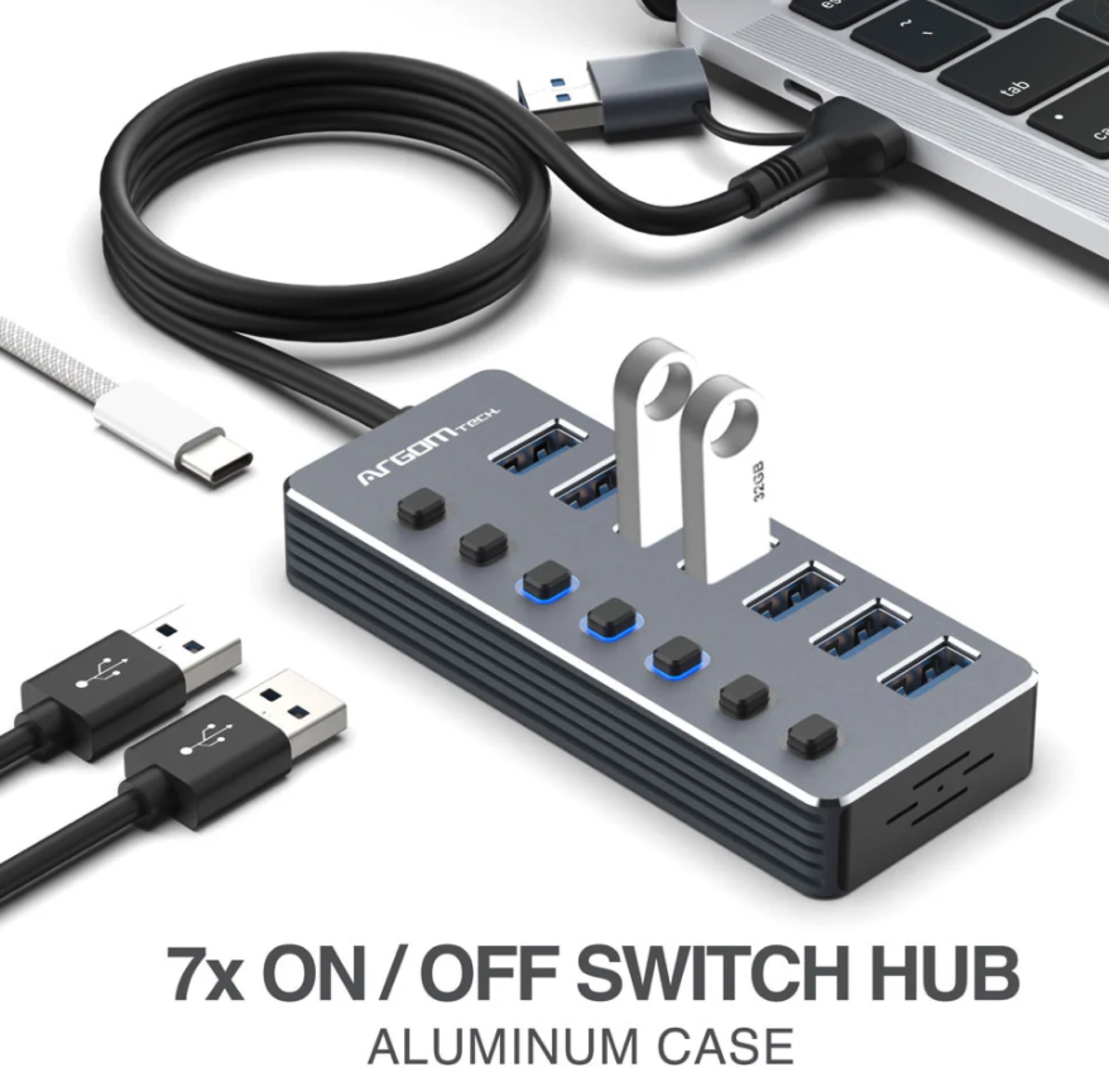 7 puertos USB 3.0 con interruptores individuales
